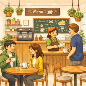 そして若い女性が複数人テーブル担当で一所懸命動いていて、年配の女性が全体を仕切ってサポートをしていました。レジの近くには手作りの工芸品がずらっと並んでいました。そして店の中に貼ってあるポスターを眺めて気がつきました。そう、ここは障がい者の方の社会参加と地域との交流を目的とした施設だったのです。